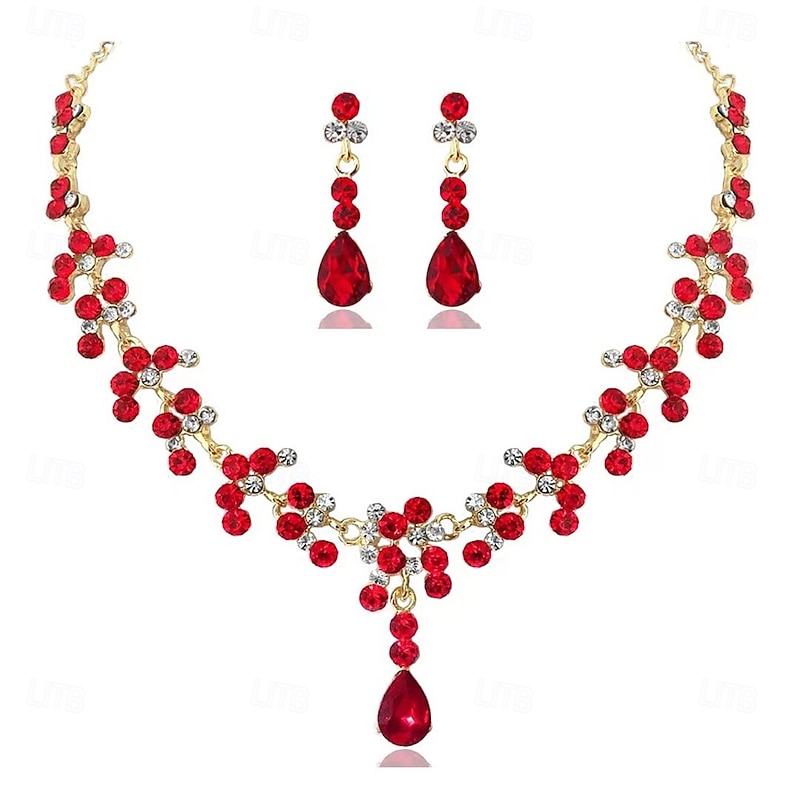 More information about Jewelry Set Two-piece Suit Green Rhinestone Alloy 1 Necklace Earrings Women's Elegant Vintage Fashion Vintage Style Classic Jewelry Set For Wedding Party Valentine's Day