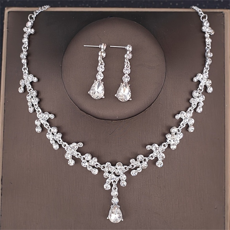 Jewelry Set Two-piece Suit Green Rhinestone Alloy 1 Necklace Earrings Women's Elegant Vintage Fashion Vintage Style Classic Jewelry Set For Wedding Party Valentine's Day 11