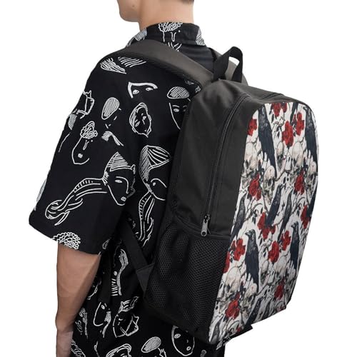 OBLUE Gothic Raven Crow Skull Flower Backpack 17 Inch Shoulders Daypack Simple Leisure Travel Bag 6
