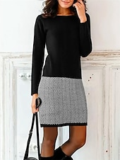 Highlights [Fabric:] This women's sweatshirt dress is crafted from high-quality polyester, providing a comfortable fit with just the right amount of micro-elasticity for ease of movement. [Fit & Style:] Designed with a loose fit, this dress strikes the perfect balance between casual and chic. Its long sleeves and crew neck design offer a timeless, active style that suits everyday fashion needs. [Design Highlights:] The dress combines a striking geometric and color block pattern with a chic print, giving it a modern and fashionable look. The dress's unique blend of patterns enhances its appeal, making it a standout piece in any wardrobe. [Occasions:] Perfect for weekend outings, casual gatherings, and outdoor events. Whether you're going out for a day of shopping or enjoying a relaxed weekend, this dress fits seamlessly into a variety of settings. [Size Range:] Available in a wide range of sizes from S to XXL, ensuring a great fit for different body types and preferences.