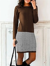 More information about Women's Sweatshirt Dress Mini Dress Casual Dress Active Fashion Outdoor Going out Weekend Crew Neck Print Geometric Color Block Loose Fit Black Brown Green S M L XL XXL