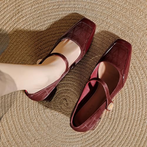More information about Women's Mary Jane Hook and Loop Chunky Heel Pumps Fashion Square Toe Color Blocking Mid Block Heel Working Business Dress Shoes Daily Breathable Non-Slip Pumps