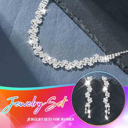 Unicra Rhinestone Bridal Wedding Jewelry Set Silver Necklace Earrings Bracelet Ring Sets Prom Formal Costume Jewelry Sets for Women and Brides 2