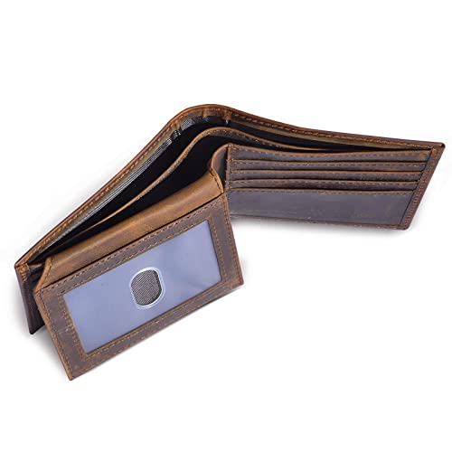 Le'aokuu Mens Genuine Leather Cowhide Bifold Credit Card Case With Flip ID Window Wallet (Brown) 6