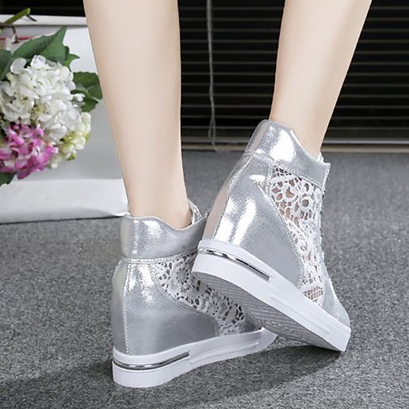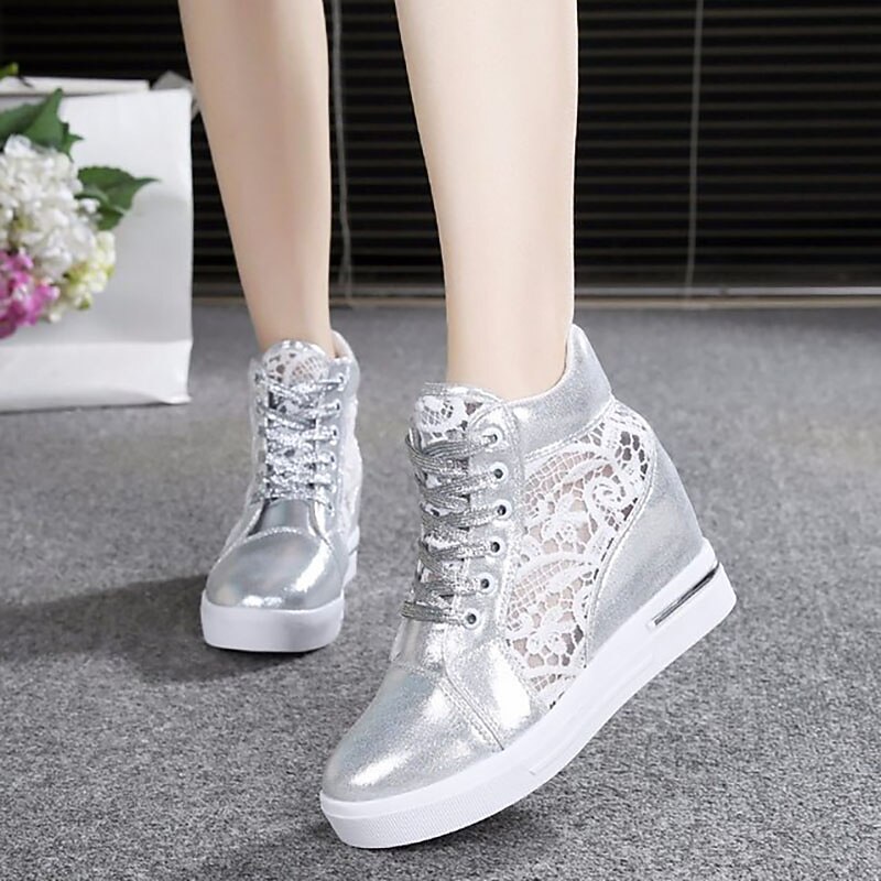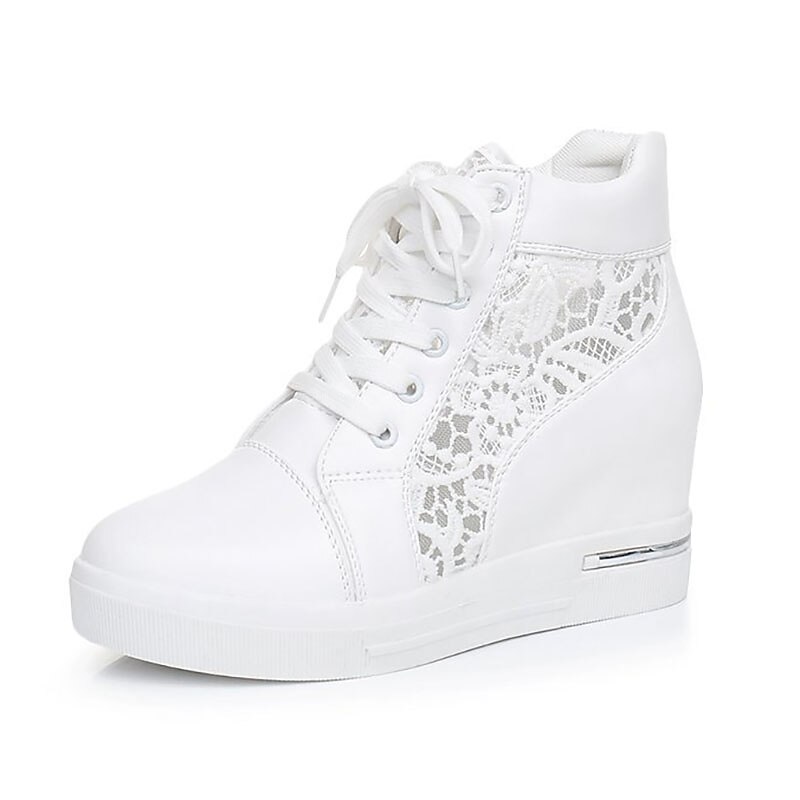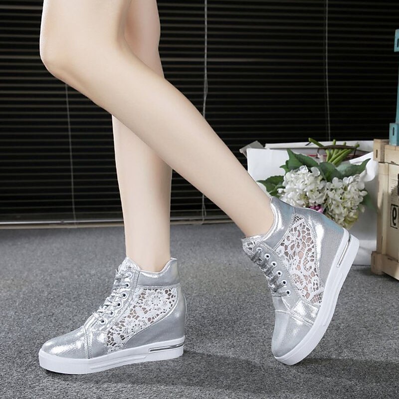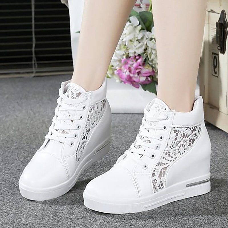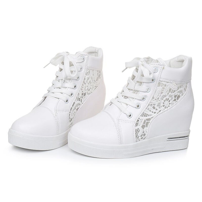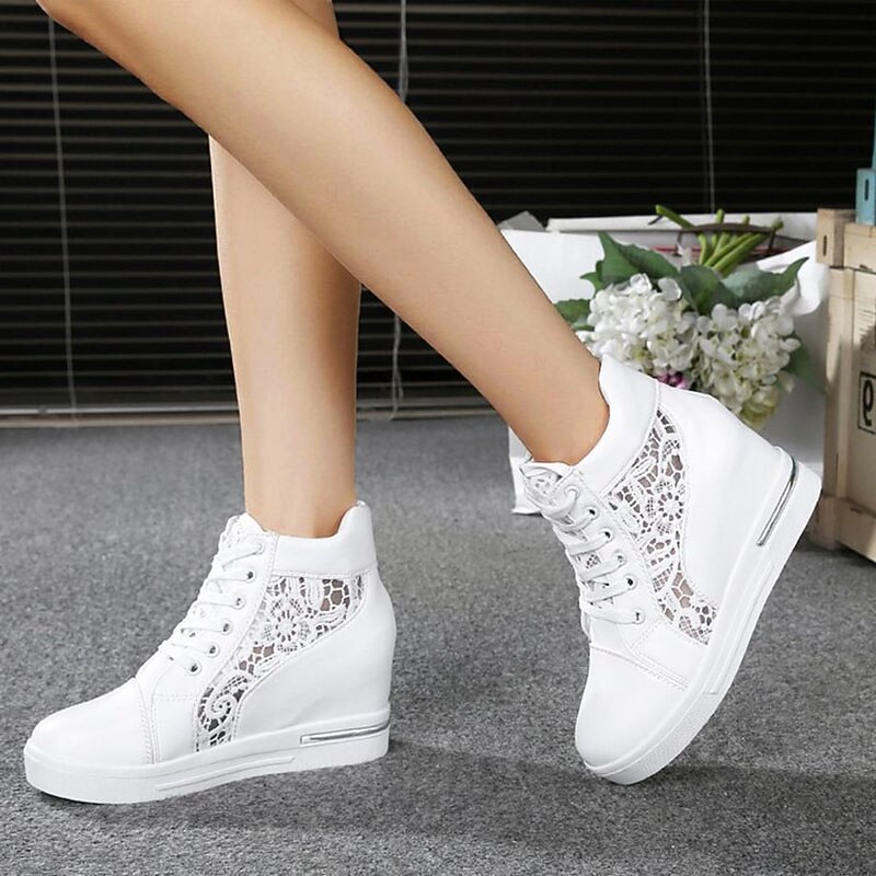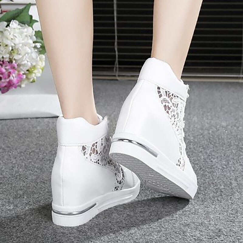 Women's Breathable Wedge Sneakers with Lace Panel – Comfortable Lace-Up High-Top Shoes for Casual Outings and Summer Wear 4