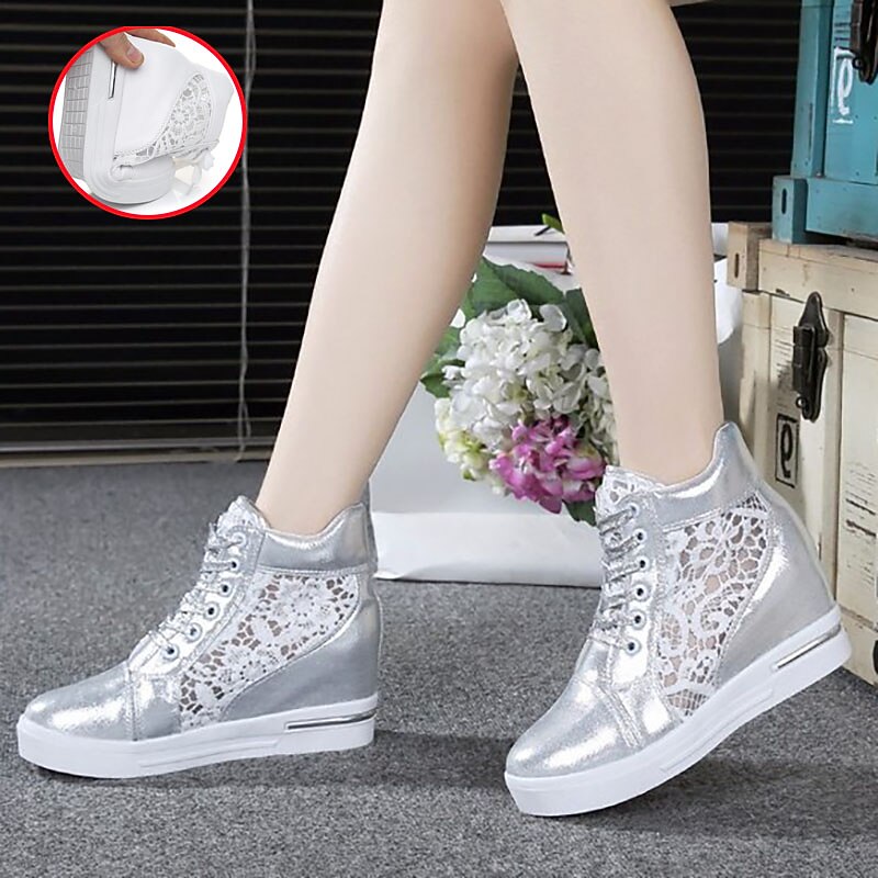 HOT ! Women's Breathable Wedge Sneakers with Lace Panel – Comfortable Lace-Up High-Top Shoes for Casual Outings and Summer Wear