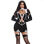Nun Halloween Dress Fancy Costume Sexy Costume Adults' Women's Halloween Carnival Performance Party Easy Halloween Costumes Dress Up 2