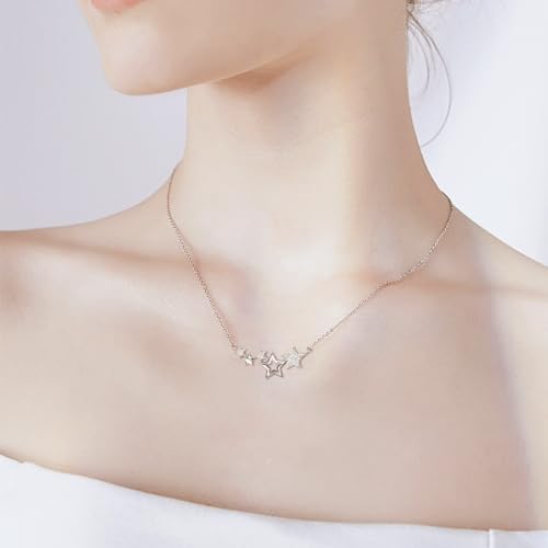 Material: Sterling SilverMetal type: Sterling SilverChain type: BoxGem type: Cubic Zirconia★Sterling silver cubic zirconia star choker necklace for Women: Crafted with high-quality sterling silver and adorned with sparkling cubic zirconia stones, it's made up of five stars. This necklace adds a touch of glamour to any outfit.Suitable for ages 5+.★Hypoallergenic: The necklace is hypoallergenic and nickel-free, making it safe for sensitive skin. Adjustable layering chain necklaces lustrous finish and features clear crystals that catch the light beautifully.★Versatile Design: The choker necklace is versatile and can be worn as a standalone piece or layered with other necklaces for a more intricate look. Wearing it can make your charm more radiant, and it is a very good match with simple skirts or daily clothes.★Perfect Gift: This necklace makes a great gift for any occasion, whether it's a birthday, anniversary, graduation, or just to show someone how much you care. For example: mother, wife, girlfriend, daughter, friend, best friend.★We have excellent service awareness and professional service capabilities to ensure your high-quality shopping experience. If you have any questions during the process, please feel free to contact us! Perfect for everyday use. excellent materials and excellent craftsmanship ensure long-lasting durability.