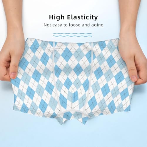 HOT ! Boys' Cotton Boxer Brief Soft Underwear-Blue And White Squares