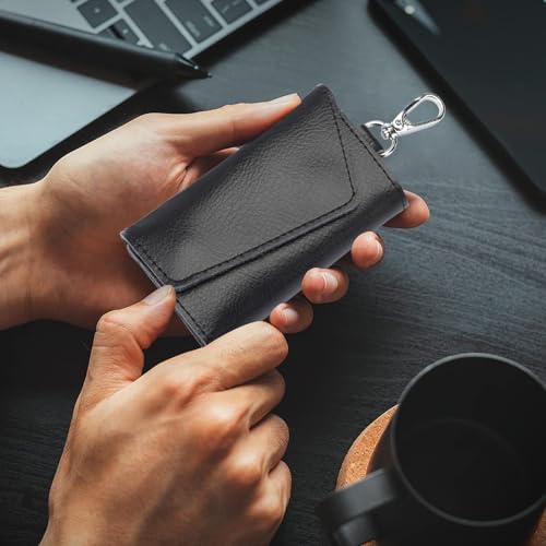 • Premium Genuine Leather :Durable and stylish flip-fold key holder, designed to protect keys while adding a touch of elegance.