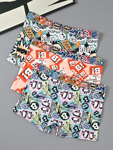 Men's Underwear Trendy Graffiti Fashion Printing Comfortable Mid-Rise Boxer Shorts 3PCS 4