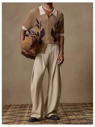 More information about OYOANGLE Men's Pleated Dress Pants Zipper Fly Work Office Slacks Straight Leg Trousers with Pocket