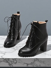 More information about Women's Black Leather Lace - Up Block Heel Ankle Boots - Work Ready, Chic Business Casual Shoes for Office & Daily Commute