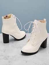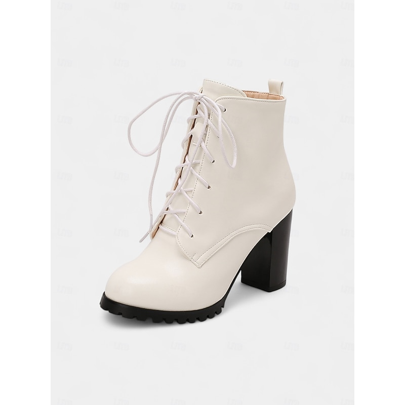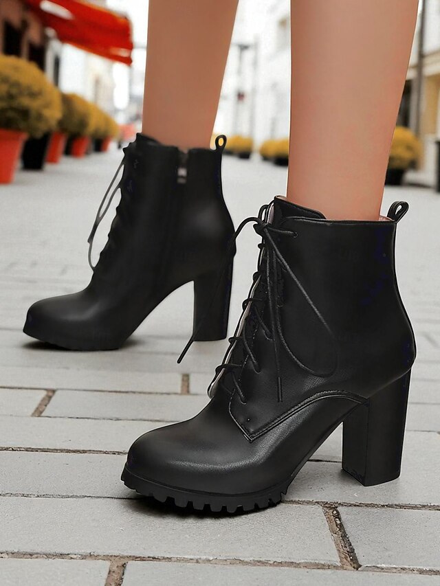 HOT ! Women's Black Leather Lace - Up Block Heel Ankle Boots - Work Ready, Chic Business Casual Shoes for Office & Daily Commute