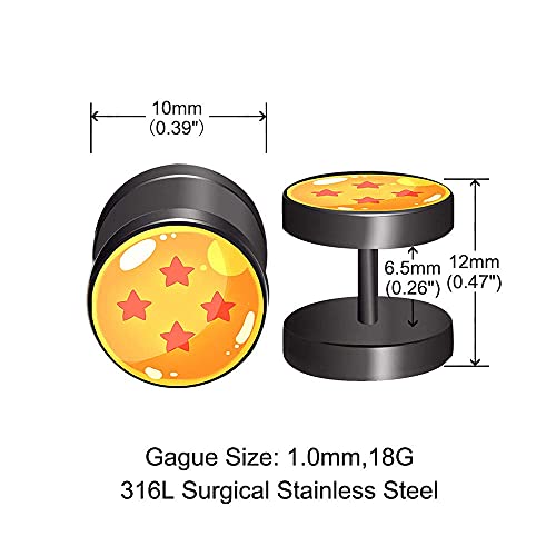 More information about FLYUN 6Pairs Anime Fake Gauges Earring for Men Boy, Fake Gauge Fake Plugs 10MM 18G Screw Stud Black Men's Earrings
