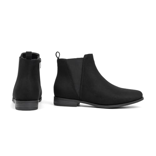 • Elegant & Dressy: The standout feature of these flat Chelsea boots is their sleek and modern design almond round toe and soft faux suede upper, making them suitable for both casual and formal occasions.