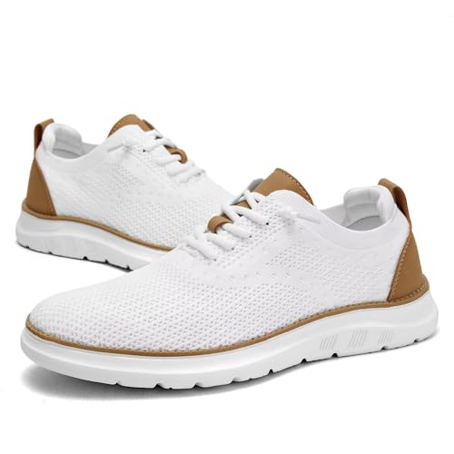 Men's Mesh Sneakers Oxfords Lace-Up Lightweight Casual Walking Shoes Driving Shoes White 6