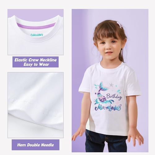Birthday Girls Toddler Shirt Cotton Mermaid Birthday Short Sleeve Tees Girls Birthday Outfit for 3rd 4th 5th 5