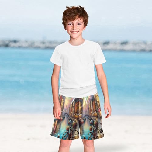 River Bridge Bike Boys Swim Trunks Quick Dry Toddler Swimsuit Boy Board Shorts Bathing Suits Swimwear XS Multi 4