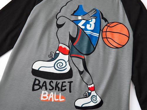 • Feature: This boys' pj features the pattern of player No. 23 playing basketball and black & white text of " BASKETBALL " on the gray & black top. each-over black & white basketball elements and text print on the gray pajama pants, making this an extra fun and beloved casual clothes set for boys at bed time. Crewneck & raglan long sleeves on top. Pull-on elasticized waistband on the PJ pants for on-and-off convenience. The cool patterns will make the boys stand out on Pajama Day or slumber party.