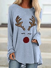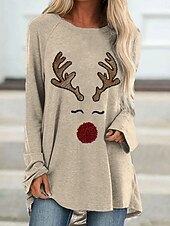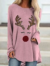 More information about Christmas Women's T Shirt Graphic Reindeer Vintage Stylish Classic Long Sleeve Crew Neck Regular Tops Daily Going out Weekend Print Pink Blue Green Khaki Spring Fall Winter