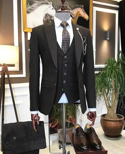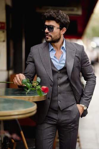 • 【PACKAGE INCLUDES】: This Mens Slim Fit Black 3 Piece Pinstripe Suit consisting of 1*Blazer+1*Vest+1*Pants.Should you have any questions about size, please feel free to contact us.If you are not satisfied with our suit, you can contact us and we will handle your return package problem.