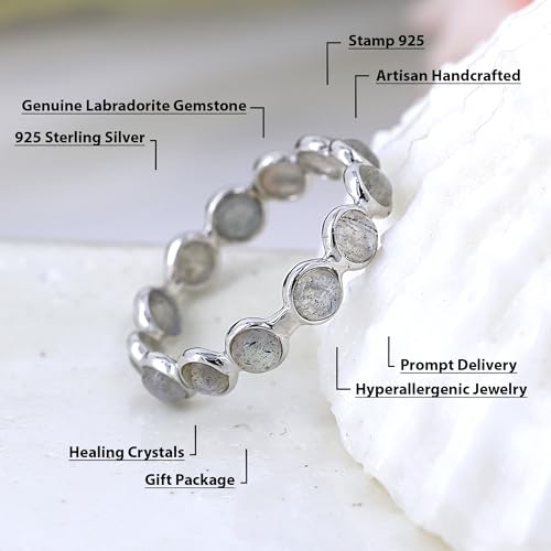 Stacking Eternity Band Ring for Women Labradorite Gemstone Ring 925 Sterling Silver Jewelry Gift for Wife Mother Daughter 6