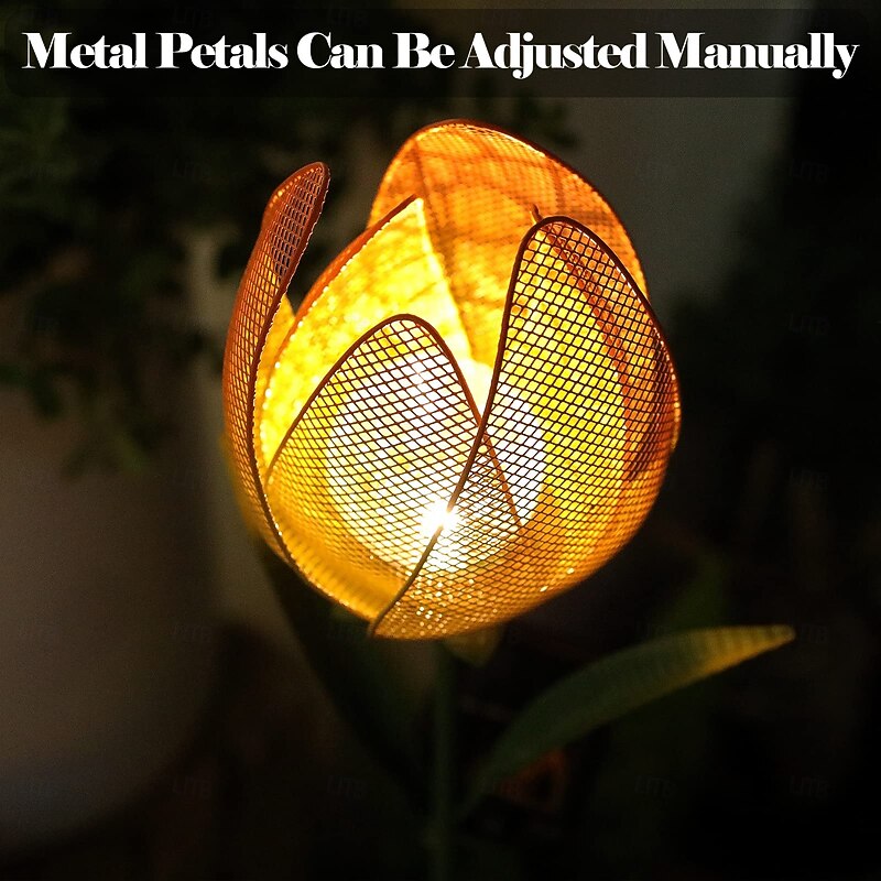 More information about 2 Pcs outdoor solar iron hollow flower petals tulip ground inserted lights courtyard garden path lawn sidewalk decorative lights landscape lights