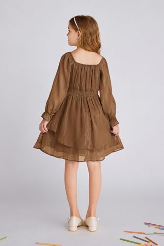 GRACE KARIN Girls Fall Dress Long Sleeve Casual Dresses Square Neck Ruffle Tiered Layer A-line Dress 5-12Y 2