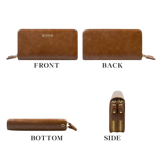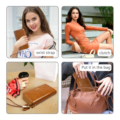 Womens Leather Wallets, Wallet for Women, Clutch RFID Blocking Leather Wristlet Purse Large Capacity Credit Card Holder with Grip Hand Strap (Brown) 4