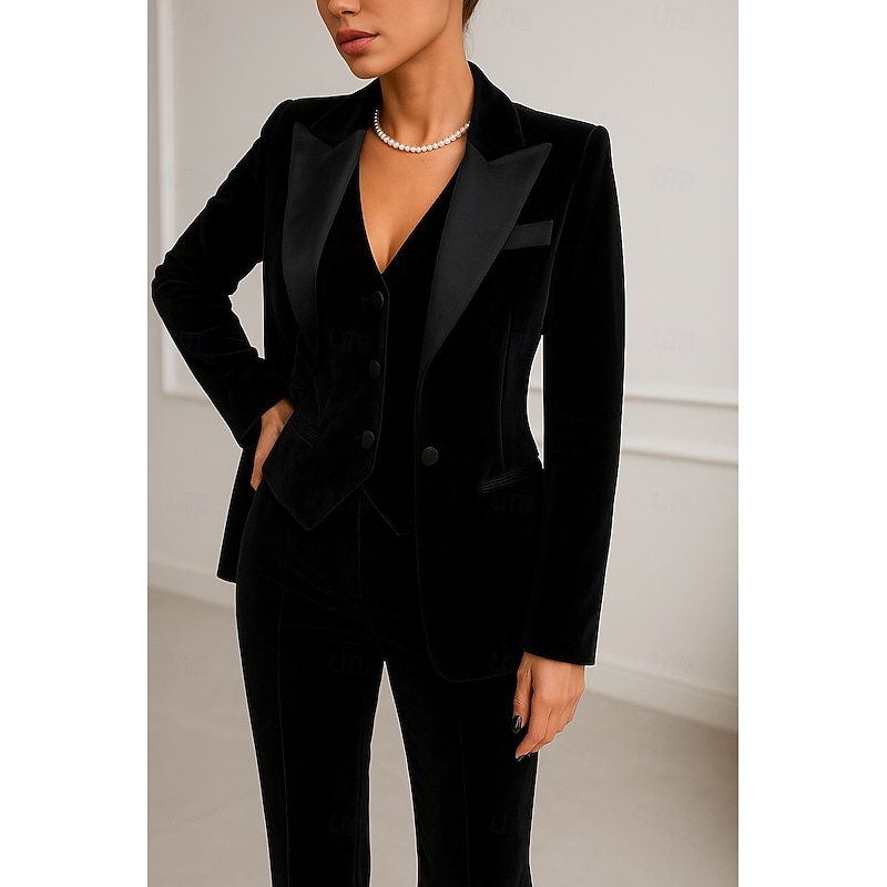 More information about Women's 3 Pieces Suits Formal Wedding Guest Velvet Elegant Simple Long Sleeve Floor Length Peak Lapel Single Breasted