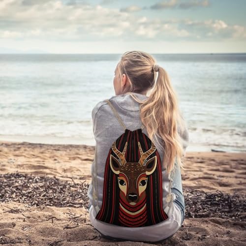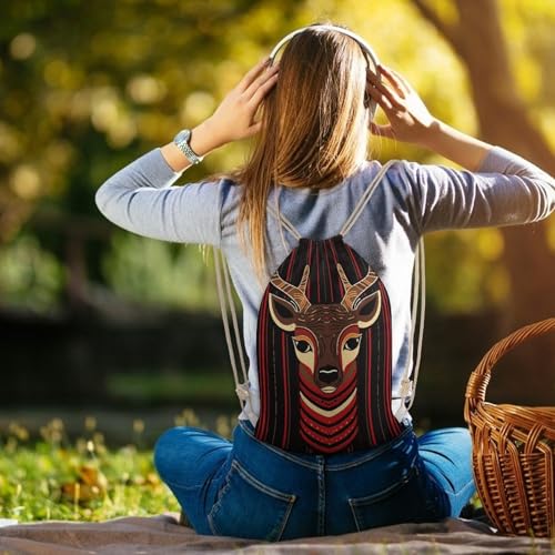 Drawstring Backpack Gym Bag Red And Brown Reindeer Cinch Sackpack Waterproof Beach Bag for Women Men