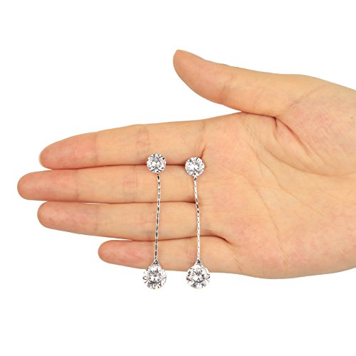 More information about Crystal Linear Drop Earrings - Womens Sterling Silver Round Cubic Zirconia CZ Diamond Rhinestone Long Chain Dangle Earrings Bridal Drop Earrings for Wedding Bride Bridesmaids