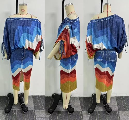 • Notes: womens 2 piece skirt sets for Made of 95% polyester and 5% spandex that is elastic,Adopting a Imitation denim printing and dyeing design,it looks like a denim skirt,but it is not a denim skirt.