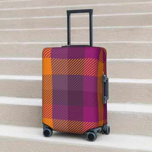 HOT ! Purple Yellow Buffalo Plaid Luggage Cover Washable Elasticated Luggage Covers for Suitcase tsa Approved Stylish Dust and Scratch Resistant Luggage Case Protector for Kids and Adults -