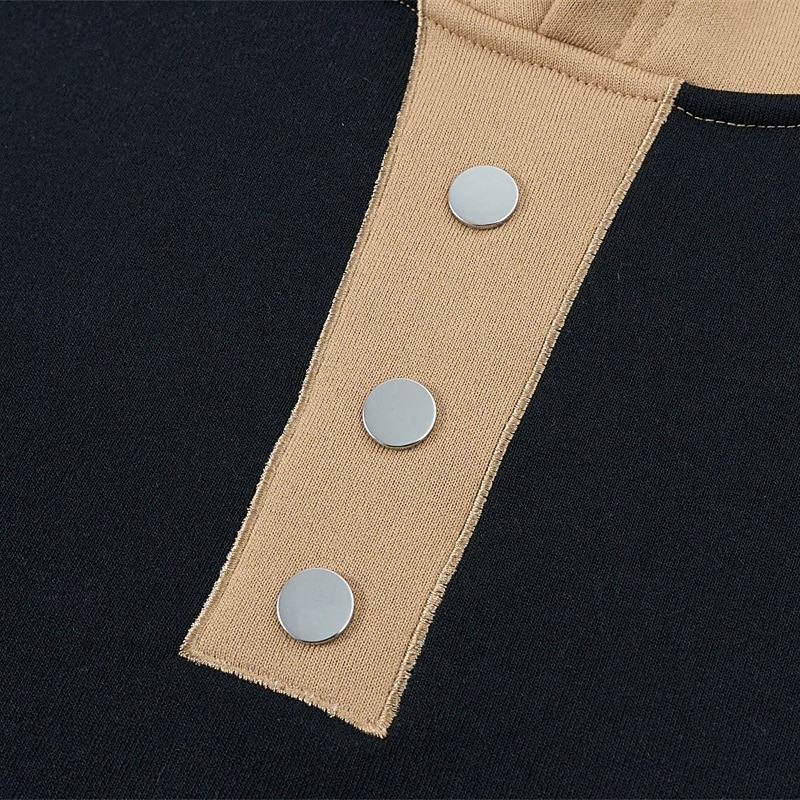 Highlights - Perfect for the Fall and Winter seasons - Made of high-quality polyester fabric - Features long sleeves for added warmth - Specifically designed for men - Stylish color block pattern with patchwork detailing - Includes a trendy hooded neckline