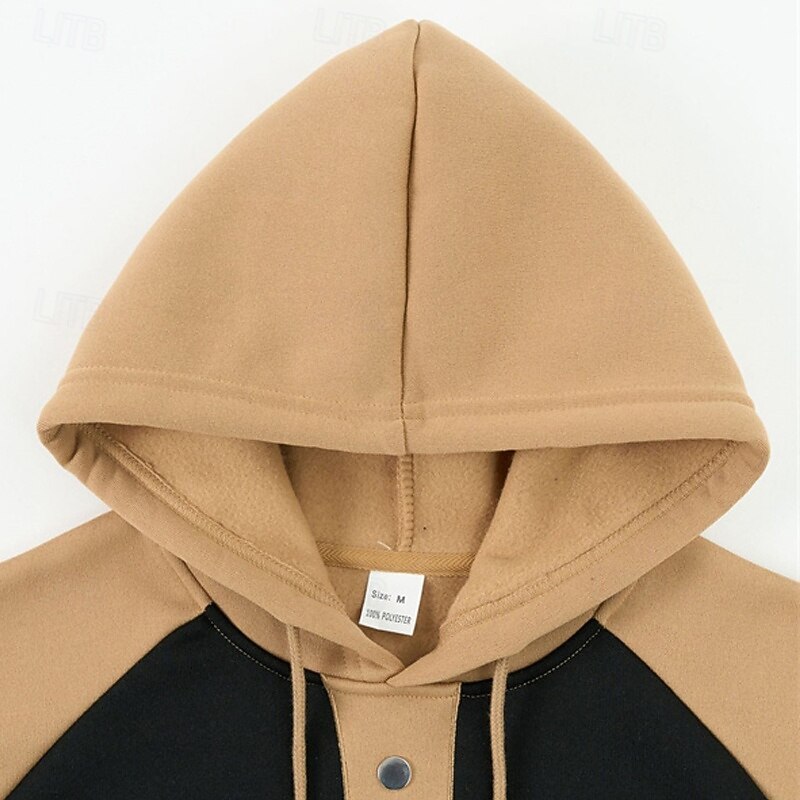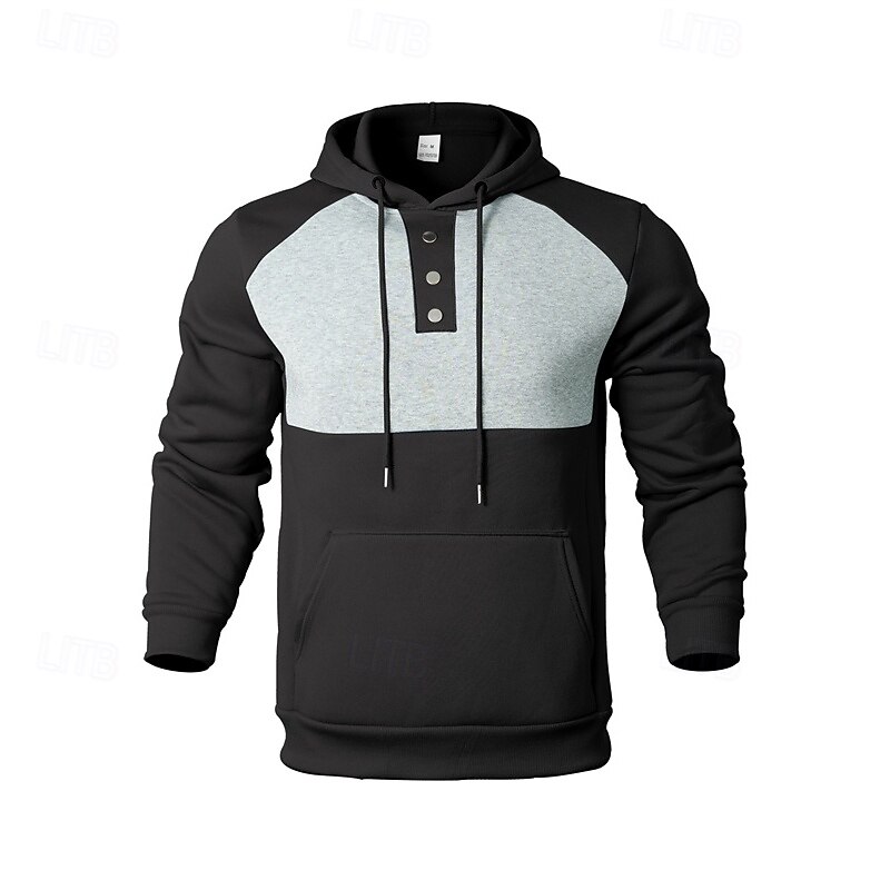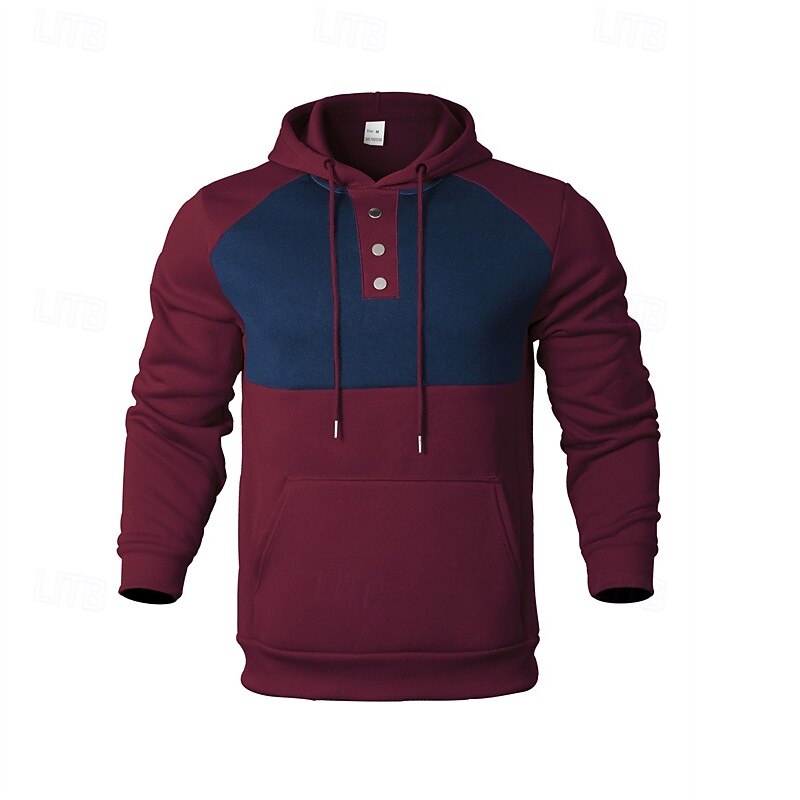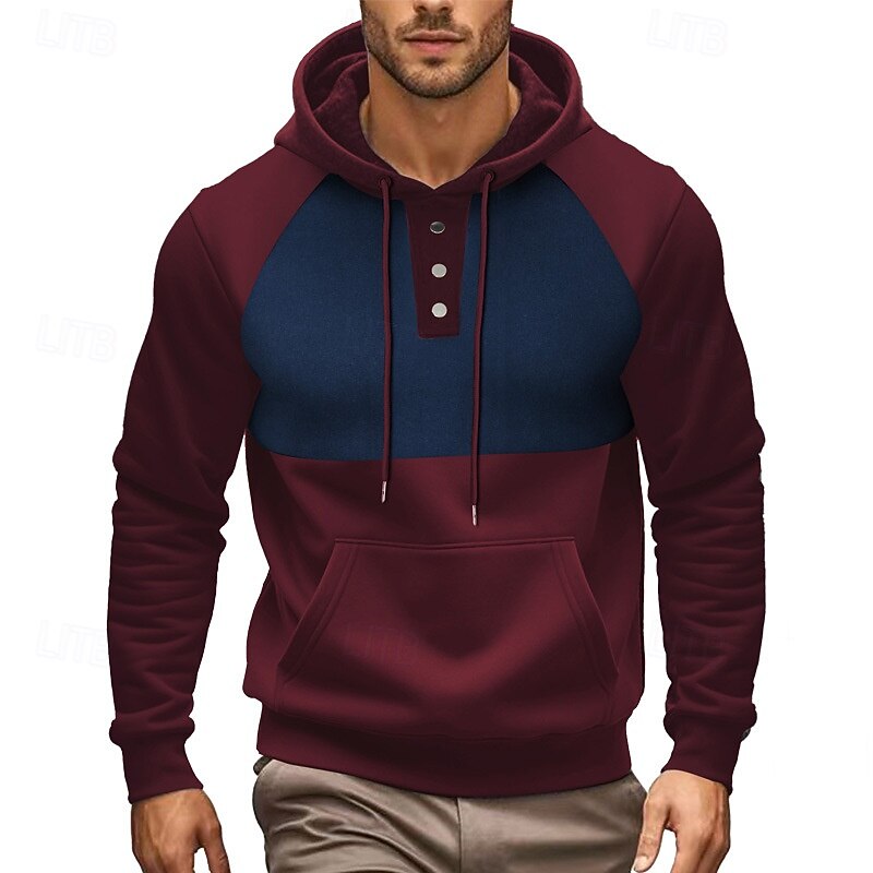 More information about Men's Hoodie Black Wine Navy Blue Khaki Gray Hooded Color Block Patchwork Pocket Sports & Outdoor Daily Holiday Polyester Streetwear Basic Casual Fall Winter Clothing Apparel Hoodies Sweatshirts