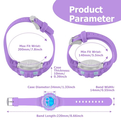 • Multifunctional Kids Watch and Easy to Set: time,week,calendar,alarm, stopwatch,12/24H,hourly time chimely.Multifunctional sports watch suitable for various outdoor sports and daily study and life use:during outdoor activities,swimming,class time,sports activities,help children to watch time,cultivate a good sense of time, and arrange their schedules reasonably
