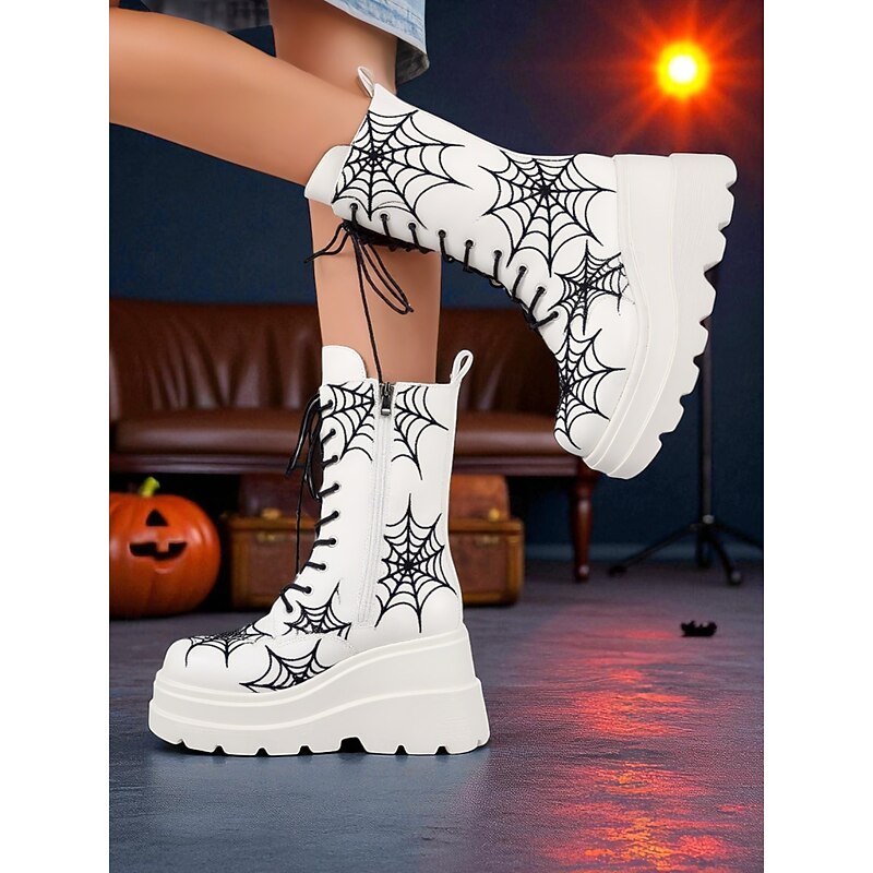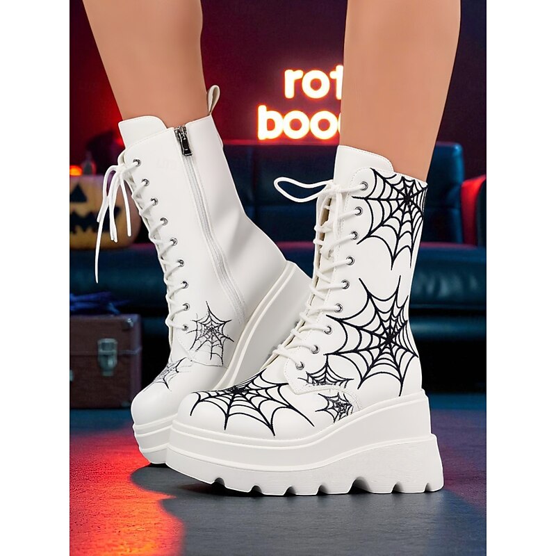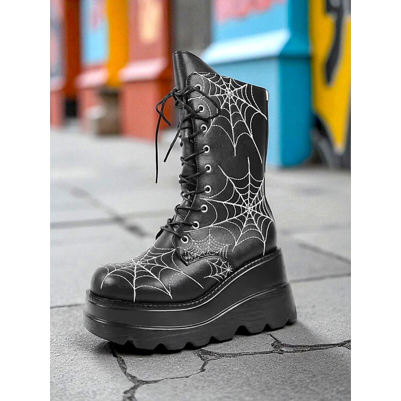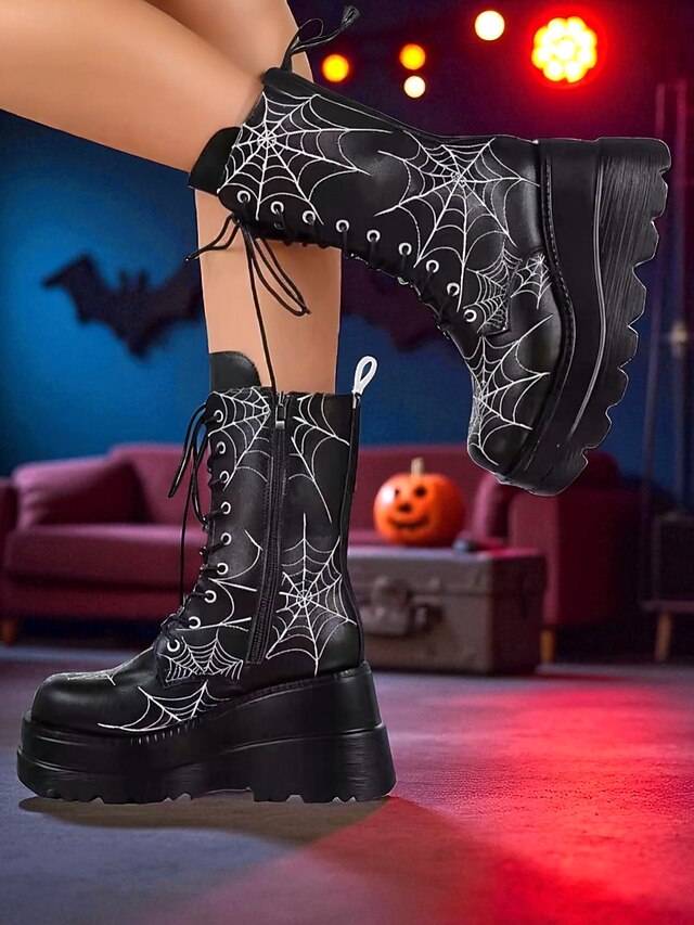 $46.99 - Women's Black Spider Web Platform Combat Boots - Gothic Lace-Up Halloween Costume Shoes for Festivals and Cosplay 2025. Shop for cheap Shoes For Women online? Buy at lightinthebox.com on sale today!
