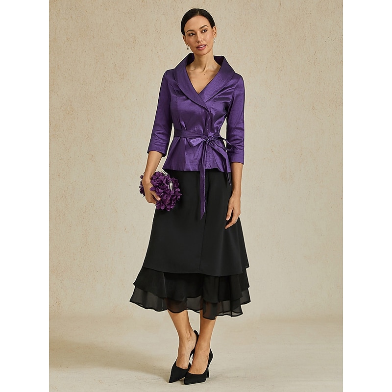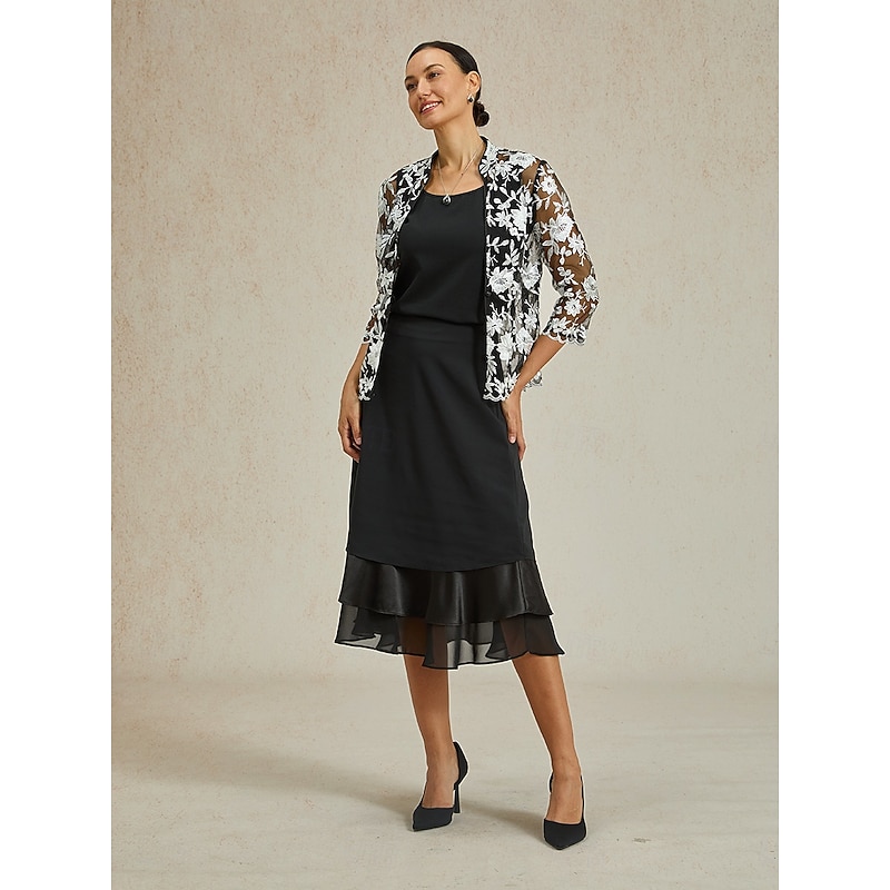 Women's A Line Elegant Fashion Midi Mid Waist Skirts Ruffle Layered Inelastic Valentine's Day New Year Black Spring Chiffon 2