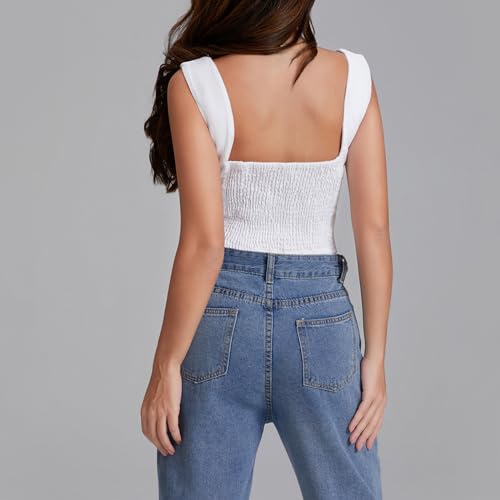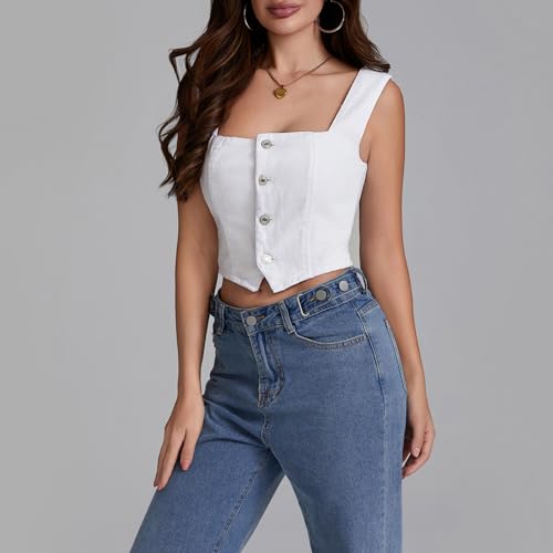• ❤Sexy Slim Jean Vest For Girls: Cute women summer vest features with sleeveless, solid color,backless, button down closure, tight fit, cropped length, y2k vintage jean vest has irregular hem, smocking back, so the back has great elasticity, which fits your body and makes you look slimmer.