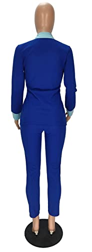Recious Womens Sexy 2 Pieces Denim Printed Zipper Jackets Bodycon Pants Party Clubwear Tracksuit Outfits Set 7