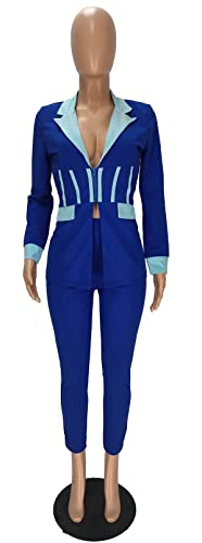 Recious Womens Sexy 2 Pieces Denim Printed Zipper Jackets Bodycon Pants Party Clubwear Tracksuit Outfits Set 2