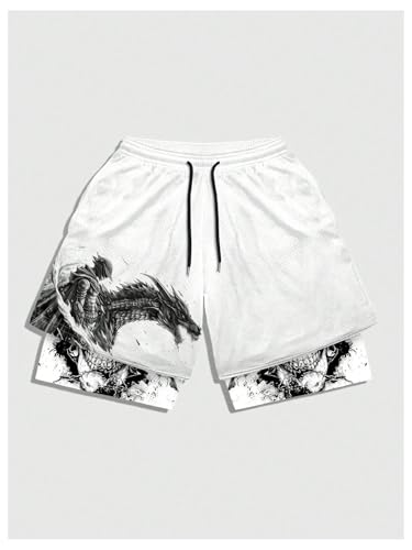 GORGLITTER Men's Graphic Anime Gym Shorts Y2K 2 in 1 Basketball Athletic Workout Drawstring Drippy Shorts 2