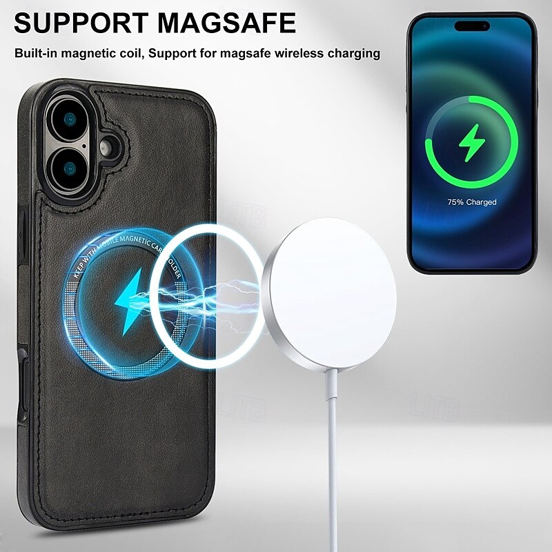 Phone Case For iPhone 17 Pro Max 17 Air 16 15 14 Pro Max Plus 13 Pro Max Back Cover Magnetic Support Wireless Charging Shockproof Retro TPU PU Leather 4