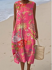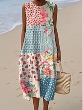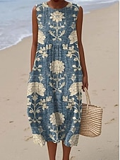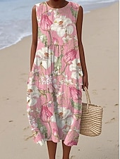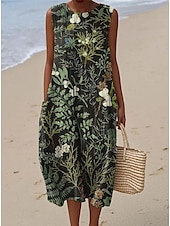 More information about Women's Midi Dress Sundress Shift Dress Vacation Casual Boho Party Beach Floral Graphic Sleeveless Crewneck Black Green Blue White Pink Red Summer Spring