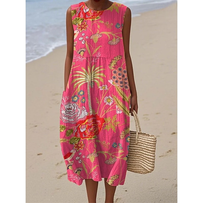 Women's Midi Dress Sundress Shift Dress Vacation Casual Boho Party Beach Floral Graphic Sleeveless Crewneck Black Green Blue White Pink Red Summer Spring 2