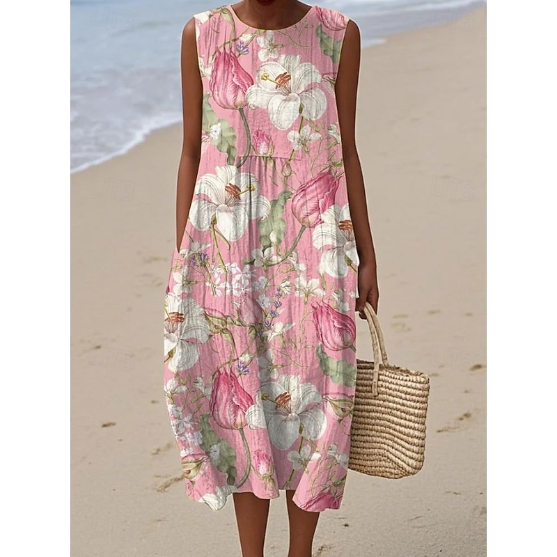 HOT ! Women's Midi Dress Sundress Shift Dress Vacation Casual Boho Party Beach Floral Graphic Sleeveless Crewneck Black Green Blue White Pink Red Summer Spring