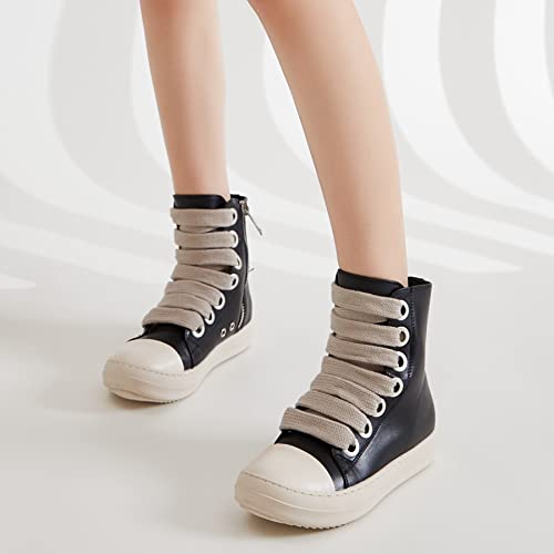 MOFEEDOUKA Womens High Top Sneakers Thick Shoe Laces PU Leather Comfort Platform Walking Shoes with Zipper 1