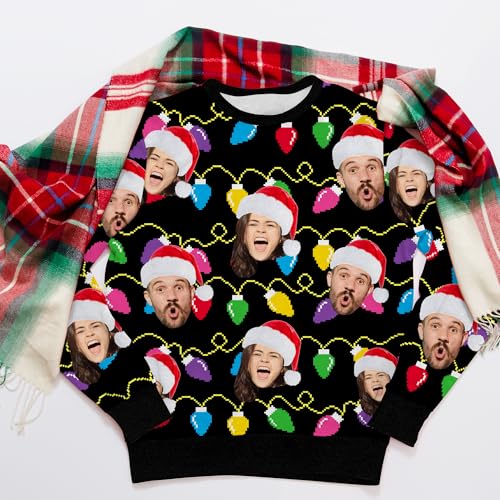 Artsadd Custom Ugly Christmas Sweatshirts with Photo Personalized Funny Face Crewneck Sweater Hoodies for Men Women Christmas 1